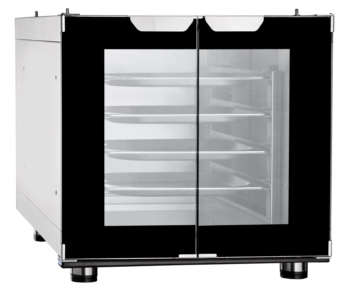 - Количество уровней: шкаф оборудован четырьмя уровнями, между которыми расстояние составляет 71 мм, что позволяет разместить до четырех гастроемкостей формата GN1/2 или GN2/3.