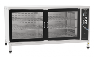 - Оборудование оснащено 6 полками-решетками, которые могут разместить 6 гастроемкостей GN 1/1 или 6 противней EN 1/1 (размер 600х400 мм).