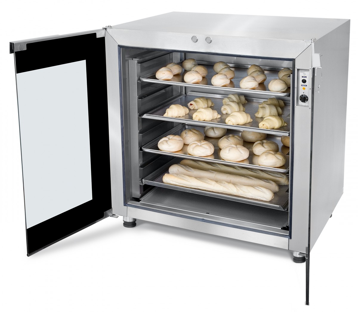 Шкаф вмещает до 8 противней размером 600х400 мм, а расстояние между уровнями составляет 75 мм, что обеспечивает удобное размещение изделий. Внутреннее пространство шкафа выполнено из нержавеющей стали, что гарантирует долговечность и легкость в уходе. Уровень влажности в камере может варьироваться от 50 до 95%, что способствует оптимальным условиям для расстойки.