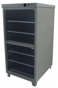 Идеален для работы с пекарскими шкафами моделей ШЖЭ, дно из н/стали с жалюзи, перестановка направления открывания стеклянных дверей, корпус окрашен порошковой краской(слоновая кость), полки из нерж. стали, плавная регулировка температуры, 6 направляющих с полками из нерж.стали под противни 600х400(12 шт) или 700х460 мм (12 шт), производительность за 1 загрузку - 144шт хлеб формовой (форма Л7); г. нетто 800х995х1660, 100кг; г.брутто:890х1070х1910; 120кг