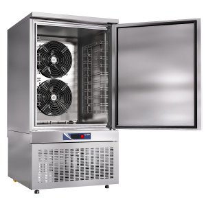 С максимальной вместимостью в 10 уровней, шкаф подходит для гастроемкостей формата GN 1/1 и 600х400 мм. Он способен обрабатывать продукты с начальной температурой до 90°C, снижая их до 3°C за 90 минут, а затем замораживая до -18°C в течение 240 минут. Это позволяет значительно продлить срок хранения как полуфабрикатов, так и готовых блюд, сохраняя их питательные вещества и вкусовые качества.