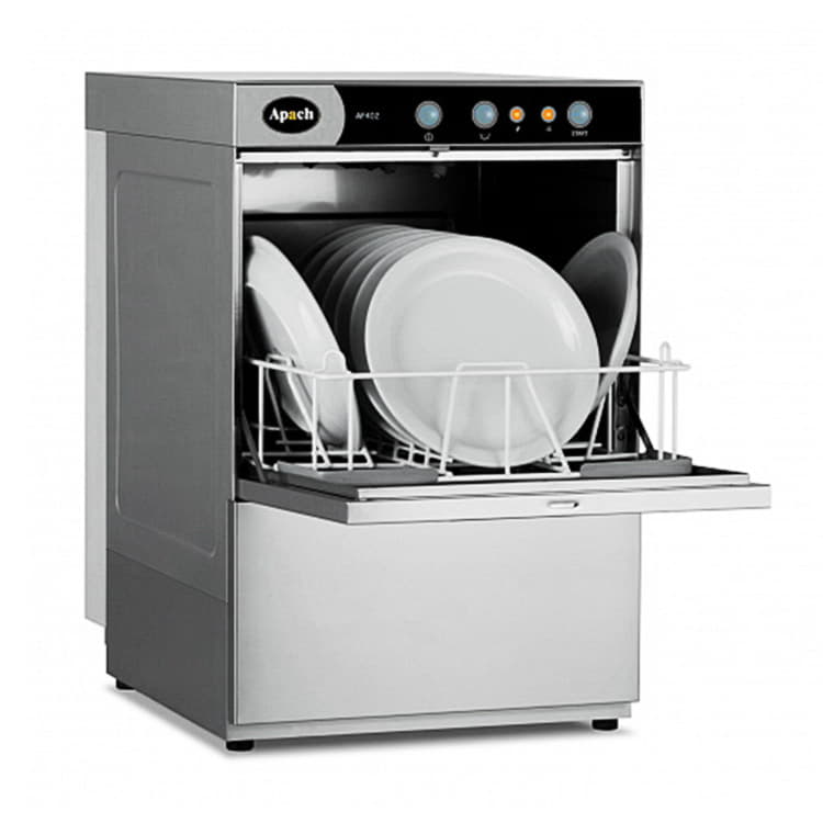 Машина стаканомоечная APACH AF400 ФРОНТАЛЬНАЯ облегчает процесс мытья бокалов, столовых приборов и блюдец в кафе, барах или других заведениях общественного питания.