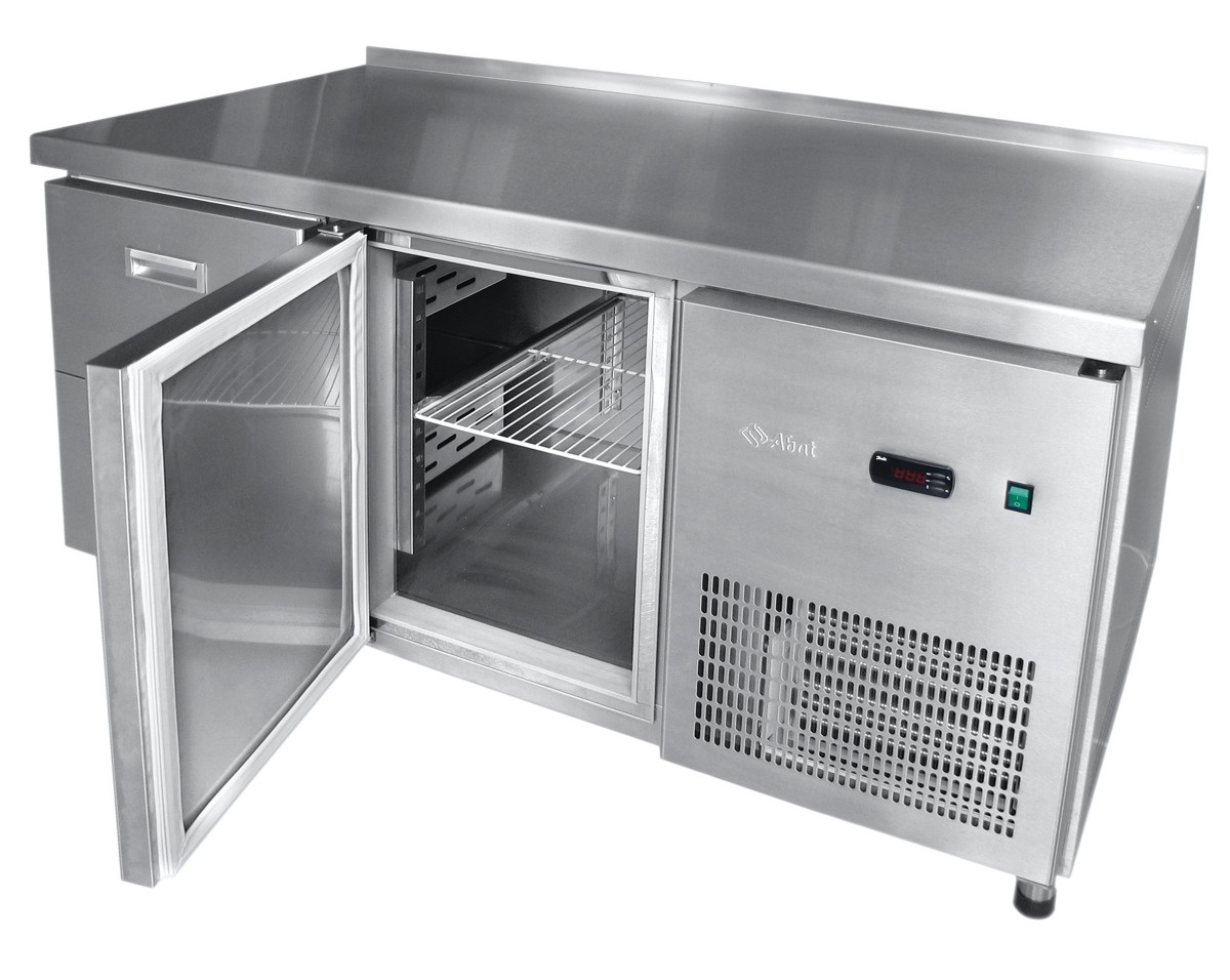 - Столешница имеет ровную поверхность без охлаждения и оснащена бортом, что предотвращает случайное падение продуктов.