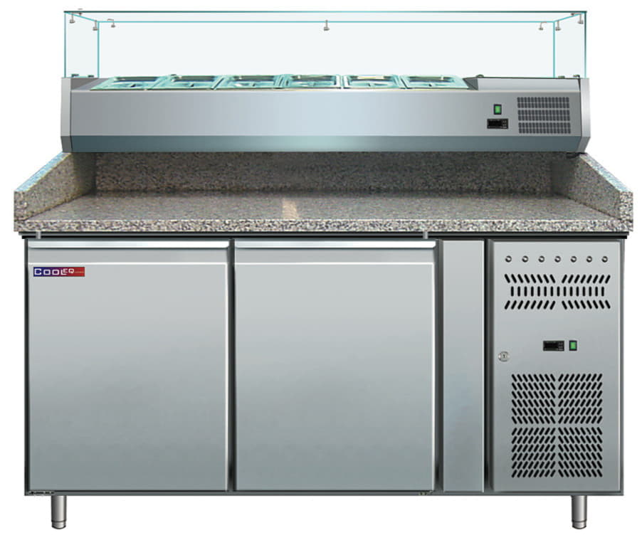 Холодильный стол для пиццы COOLEQ PZ2600TN-VRX380 выполнен из нержавеющей стали. В стол встроен холодильный шкаф с искусственным охлаждением внутреннего объема.