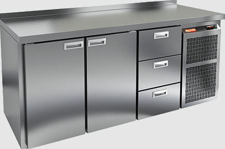 Корпус стола также изготовлен из нержавеющей стали, что придает ему прочность и устойчивость к внешним воздействиям. Устройство оснащено динамической системой охлаждения и автоматической оттайкой, что упрощает его эксплуатацию. Электронная панель управления позволяет легко настраивать необходимые параметры.