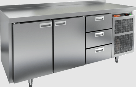 Столешница выполнена из нержавеющей стали, что обеспечивает долговечность и легкость в уходе. Толщина теплоизоляции составляет 50 мм, что способствует эффективному сохранению температуры. Охлаждение осуществляется динамическим способом, а автоматическая оттайка упрощает эксплуатацию.