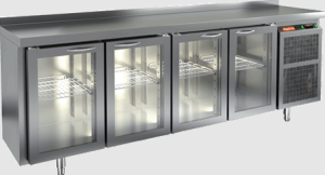 Объем устройства составляет 460 литров, а холодильный агрегат расположен справа, что оптимизирует использование пространства. Столешница выполнена из нержавеющей стали, что гарантирует долговечность и легкость в уходе.