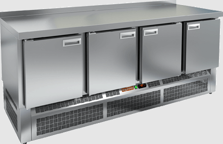 Объем данного устройства составляет 505 литров, что делает его идеальным для хранения больших объемов продуктов. Холодильный агрегат расположен в нижней части, что способствует эффективному использованию пространства. Стол соответствует гастрономическим стандартам и имеет бортик, предотвращающий случайное падение продуктов.