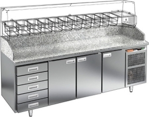 Охлаждение осуществляется динамическим способом, а оттайка — автоматически, что значительно упрощает эксплуатацию. Электронная панель управления позволяет легко настраивать необходимые параметры. Рабочая поверхность имеет глубину 680 мм и высоту 850 мм, что обеспечивает комфортные условия для работы.