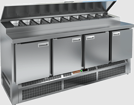 Стол холодильный HiCold PZE1-1111/GN представляет собой надежное и функциональное оборудование, идеально подходящее для профессиональных кухонь. Этот агрегат оснащен четырьмя дверцами и не имеет ящиков, что обеспечивает удобный доступ к содержимому. Температурный диапазон внутренней камеры варьируется от +2 до +10 градусов Цельсия, что позволяет эффективно хранить продукты.