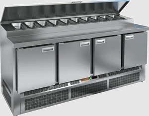 Охлаждение осуществляется динамическим способом, а оттайка — в автоматическом режиме. Удобная электронная панель управления позволяет легко настраивать необходимые параметры. Рабочая поверхность имеет глубину 324 мм и высоту 850 (990) мм, что обеспечивает комфортные условия для работы.