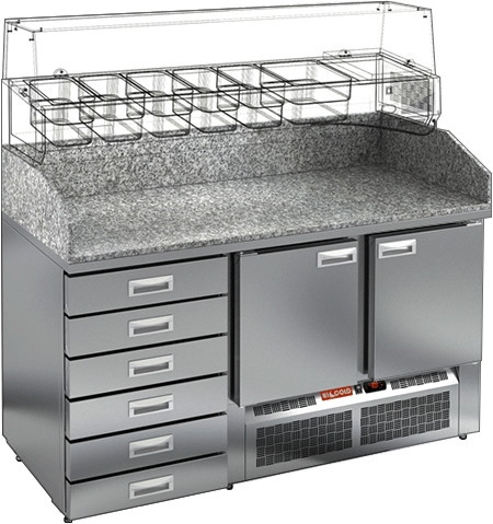 Стол холодильный HiCold PZE4-11/GN представляет собой высококачественное оборудование, предназначенное для профессионального использования в сфере общественного питания. Этот холодильный агрегат оснащен двумя дверцами и шестью выдвижными ящиками, что обеспечивает удобный доступ к продуктам и оптимальную организацию рабочего пространства.