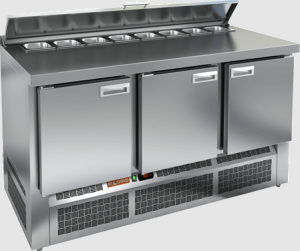 что упрощает эксплуатацию. Электронная панель управления обеспечивает удобство в настройках. Стол может вместить 8 контейнеров формата GN1/6, а размеры полок составляют 430х325 мм. В комплект входят три полки, а толщина столешницы и теплоизоляции составляет 50 мм. Регулируемые ножки по высоте и автоматические доводчики дверей с фиксатором открытого положения добавляют удобства в использовании, а легкозаменяемые магнитные уплотнители обеспечивают герметичность.