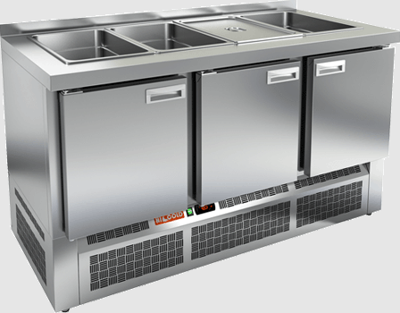 Регулируемые ножки по высоте и автоматические доводчики дверей с фиксатором открытого положения добавляют удобства в использовании, а легкозаменяемые магнитные уплотнители обеспечивают надежную герметичность. Стол холодильный HiCold SLE3-111GN производится в России и имеет гарантию на 12 месяцев.