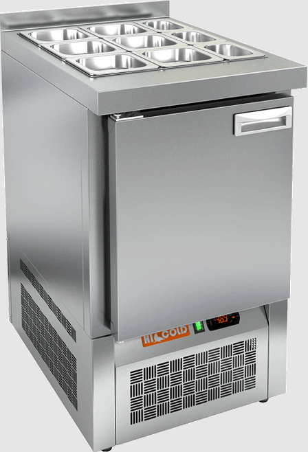 Автоматическая оттайка и электронная панель управления делают эксплуатацию стола максимально удобной. Вместимость составляет 6 контейнеров GN1/6 и 3 контейнера GN1/9, а размер полки — 530х325 мм (GN 1/1). В комплект входит одна полка, а также предусмотрены регулируемые по высоте ножки, автоматические доводчики дверей с фиксатором открытого положения и легко заменяемые магнитные уплотнители. Страна производства — Россия, а срок гарантии составляет 12 месяцев.