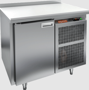 Объем холодильного отделения достигает 130 литров, а агрегат расположен справа, что обеспечивает удобный доступ. Столешница выполнена из прочного полипропилена, а корпус изготовлен из нержавеющей стали, что гарантирует долговечность и легкость в уходе.