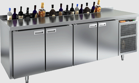Объем устройства составляет 570 литров, что делает его вместительным для хранения различных ингредиентов. Холодильный агрегат расположен справа, а конструкция не имеет гастронормированных размеров. Столешница выполнена из нержавеющей стали, что обеспечивает долговечность и легкость в уходе.