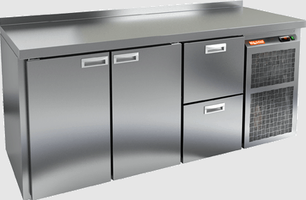 Стол оборудован динамической системой охлаждения и автоматической оттайкой, что упрощает эксплуатацию. Электронная панель управления обеспечивает точный контроль за температурными режимами. В комплект входят: