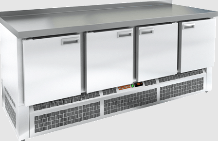 Объем устройства составляет 430 литров, а холодильный агрегат расположен в нижней части, что способствует эффективному использованию пространства. Столешница выполнена из нержавеющей стали, что обеспечивает долговечность и легкость в уходе. Корпус изготовлен из пластификата, а толщина теплоизоляции достигает 50 мм, что способствует сохранению температуры.