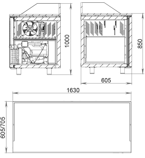 - Габариты (Ширина x Глубина x Высота): 1630 x 605 x 1000 мм