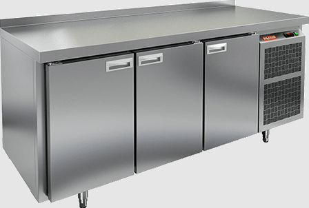 Объем морозильной камеры достигает 505 литров, что делает его идеальным выбором для заведений с высокой проходимостью. Холодильный агрегат расположен справа, что обеспечивает удобный доступ к содержимому. Стол соответствует гастрономическим стандартам и имеет бортик, предотвращающий случайное высыпание продуктов.