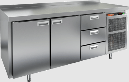 Стол выполнен из нержавеющей стали, что гарантирует долговечность и легкость в уходе. Рабочая поверхность имеет высоту 850 мм, а ее толщина составляет 50 мм, что обеспечивает надежность и устойчивость. Динамическое охлаждение и автоматическая оттайка делают эксплуатацию устройства максимально комфортной.