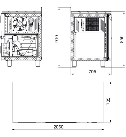 - Размеры: 2060 мм (ширина) x 705 мм (глубина) x 910 мм (высота)