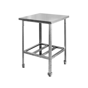 Каркас стола изготовлен из оцинкованной стали, а также может быть выполнен в вариантах с окрашенной или нержавеющей сталью. Стол оснащен полкой-решеткой, а его ножки имеют возможность регулировки по высоте, что позволяет компенсировать неровности пола при установке.