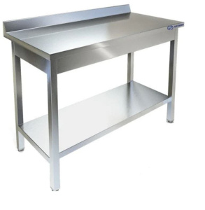 Столы производственные имеют широкую область применения: в пищеблоках, продовольственных магазинах, в цехах, связанных с переработкой пищевого сырья и т. д. Стол производственный имеет сборно-разборную конструкцию. Он состоит из столешницы и каркаса, изготовленного из конструкционного профиля 40х40 толщиной 1,2 мм. Столы с бортом устанавливается к стене, либо бортами друг к другу. Столы укомплектованы решётчатой полкой. Ножки стола снабжены регуляторами высоты, что позволяет устранять неровности пола. В конструкции стола использованы элементы для придания устойчивости и предотвращения раскачивания во время эксплуатации. Универсальная конструкция позволяет легко производить сборку стола.