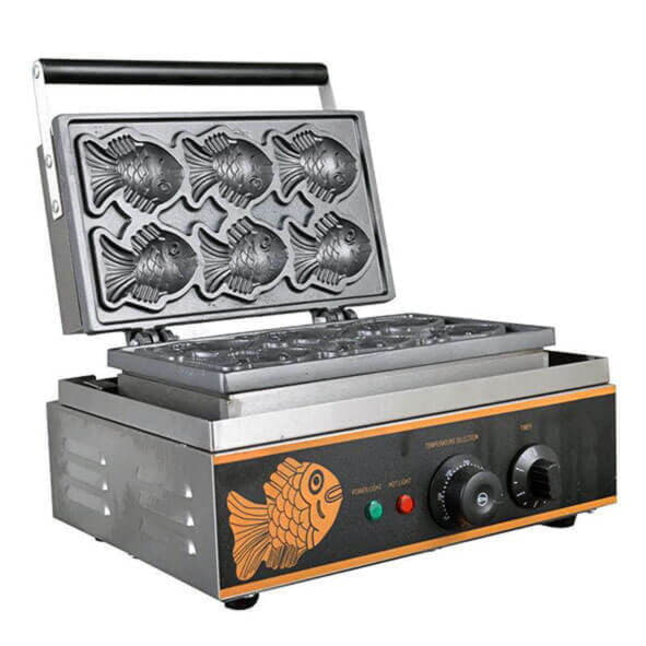 Вафельница GASTRORAG FC-6 - 1-секционная, для вафель в форме рыбок (6 шт.), антипригарное покрытие, термостат 50-300оС, таймер 0-5 мин, материал корпуса - нерж.сталь
