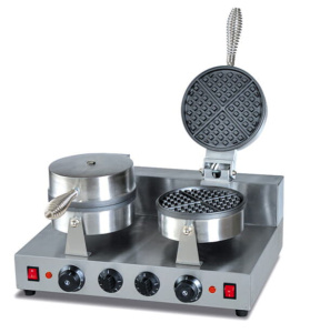 Описание: 2-секционная, для круглых венских и бельгийских вафель, антипригарное покрытие, термостат, таймер, материал корпуса - нерж.сталь