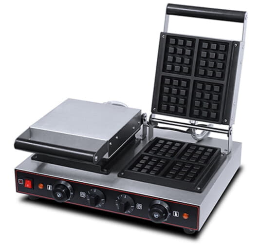 Вафельница GASTRORAG ZU-HF-2E - 2-секционная, для прямоугольных венских и бельгийских вафель(4 шт.), антипригарное покрытие, термостат, таймер, материал корпуса - нерж.сталь