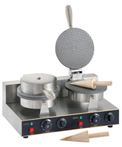 Вафельница GASTRORAG ZU-XGP-2E - электрическая, 2-секционная, для тонких вафель, диаметр пластин 210 мм, в комплекте с 2 деревянными конусами для изготовления вафельных рожков