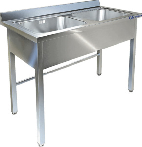 Ванны моечные являются необходимым атрибутом на любом предприятии общественного питания согласно требованиям СЭС. Используются ванны моечные для для мытья посуды, продуктов, инвентаря и т.п. Ванна состоит из двухсекционной цельнотянутой ёмкости мойки и каркаса. Мойка ванны цельнотянутая с шумопоглощающей изоляцией снизу, выполнена из пищевой нержавеющей стали марки AISI 304 толщиной 1 мм и имеет отгибы, которые исключают травмирование персонала, а также плоский борт. Каркас сварной, изготовлен из трубы 40х40 толщиной 1,2 мм нержавеющая сталь марки AISI 430. Ножки ванны снабжены регуляторами высоты, что позволяет устранить неровности пола. Ванны комплектуются сифоном с переливом, нержавеющим выпуском с решеткой диаметром 90 мм, диаметр выходного отверстия в сифоне 50 мм.