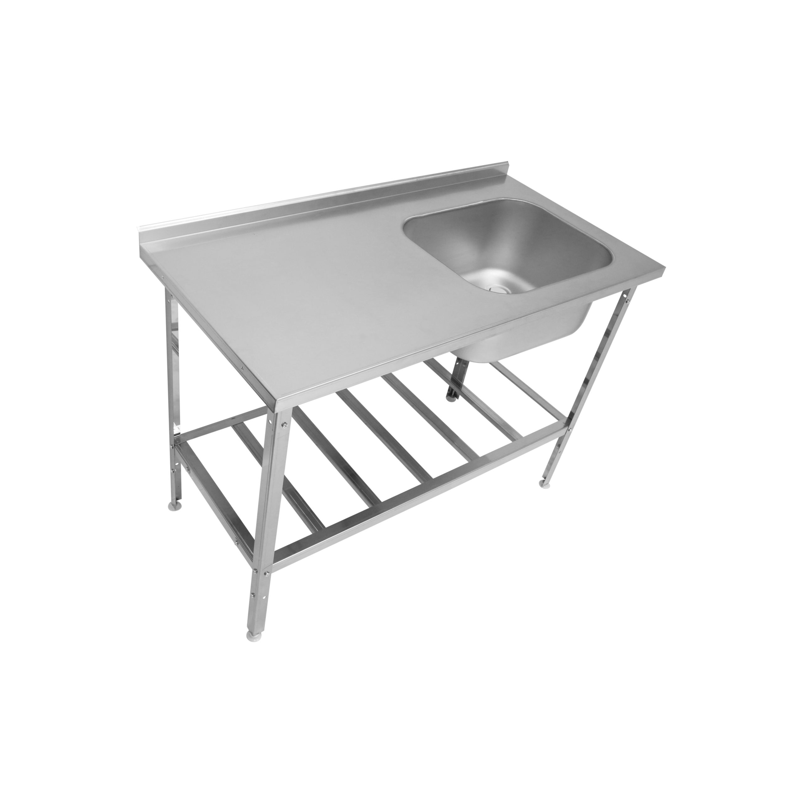 Изготовленная из нержавеющей стали марки AISI 304, ванна и рабочая поверхность имеют толщину металла 1,0 мм, что обеспечивает долговечность и устойчивость к коррозии. Каркас может быть выполнен как из крашенной, так и из нержавеющей стали AISI 430, с толщиной 1,5 мм, что гарантирует надежность конструкции. Опорные ножки, выполненные в виде уголка размером 35х35 мм, регулируются по высоте в диапазоне ±20 мм, что позволяет адаптировать изделие под любые условия.