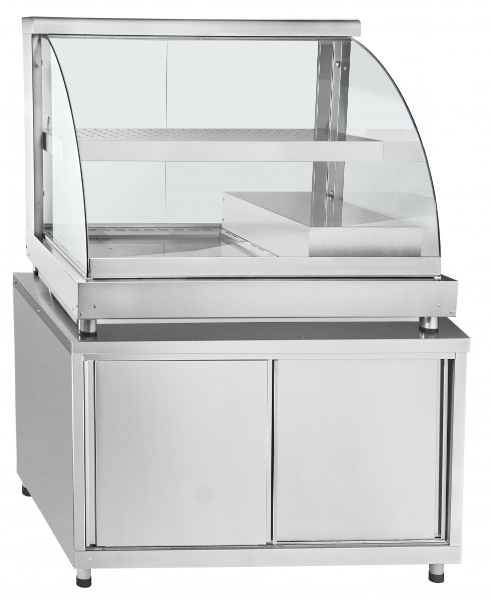 Конструкция полки, стоек и основания выполнена из нержавеющей стали AISI 304 толщиной 1 мм, что обеспечивает долговечность и надежность. Размеры полки составляют 1043х372х60 мм, а сквозная перфорация полки способствует равномерному распределению температуры внутри витрины. Боковые стенки и раздвижные дверцы изготовлены из закаленного стекла толщиной 5 мм, а со стороны покупателя используется гнутое закаленное стекло толщиной 6 мм.