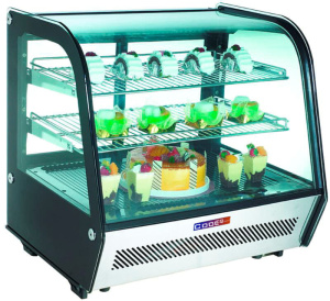 Холодильная витрина COOLEQ CW-120 предназначена для хранения и демонстрации продукта с одновременным его охлаждением. В витрине предусмотрены две хромированные полки и гладкая поверхность внизу, на которых можно хранить торты, пирожные, десерты и т.п. Витрина оснащена LED - подсветкой.