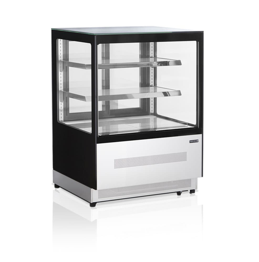 Нержавеющая сталь и блестящая черная стеклянная рама.