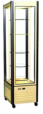 С конструктивными размерами: ширина 600 мм, глубина 575 мм и высота 1950 мм, витрина имеет четыре полки, что позволяет удобно размещать продукцию. Напольный тип установки и вес в 120 кг делают её стабильной и надежной. Устройство работает от сети с напряжением 220 В и мощностью 0,64 кВт.
