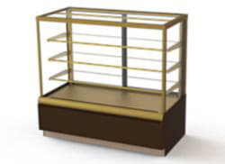 Для выпечки и других десертов, не требующих сильного охлаждения, подойдет ВИТРИНА КОНДИТЕРСКАЯ KAYMAN K-ВК-1300 КВАДРО БРОНЗА с рабочими температурами от +6 до +12 °С, и длиной 137 см.