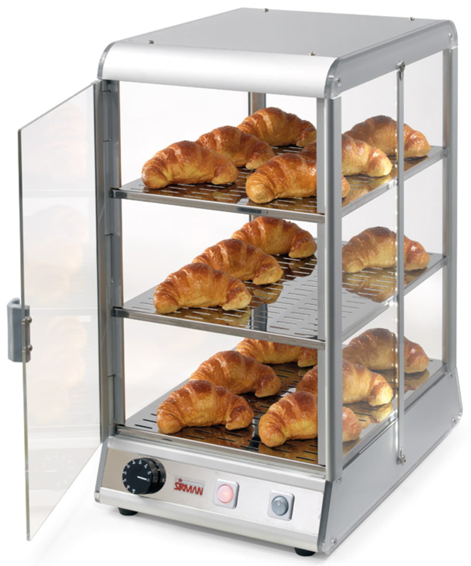 Небольшая тепловая витрина VISTA TOWER HOT от итальянской фабрики SIRMAN предназначена для экспозиции круассанов, тортов, булочек, пирогов и других кондитерских изделий. Аппарат постоянно поддерживает заданную температуру и сохраняет вкус и мягкость продуктов.