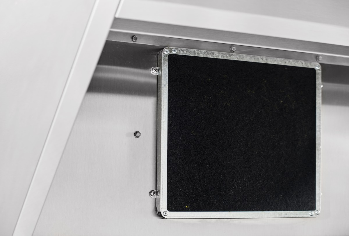 Зонт ЗВВ-800П отличается высокой эффективностью в поглощении запахов благодаря наличию трех лабиринтных и двух сменных угольных фильтров. Все фильтры легко снимаются: угольные можно заменить, а лабиринтные подлежат гигиенической очистке.