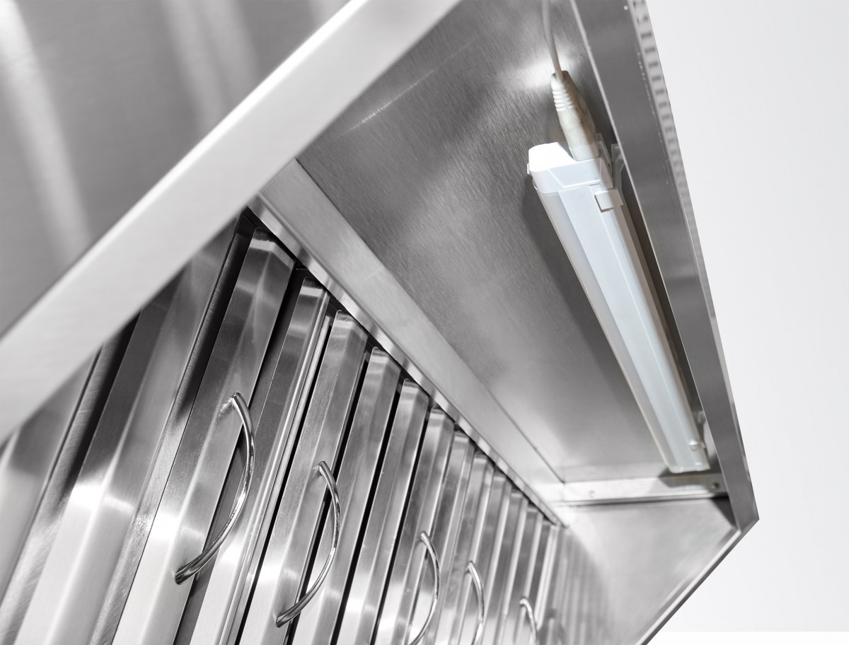 Установка зонта не занимает полезное пространство на кухне, так как он монтируется на крыше пароконвектомата. Края устройства обработаны для обеспечения безопасности персонала.